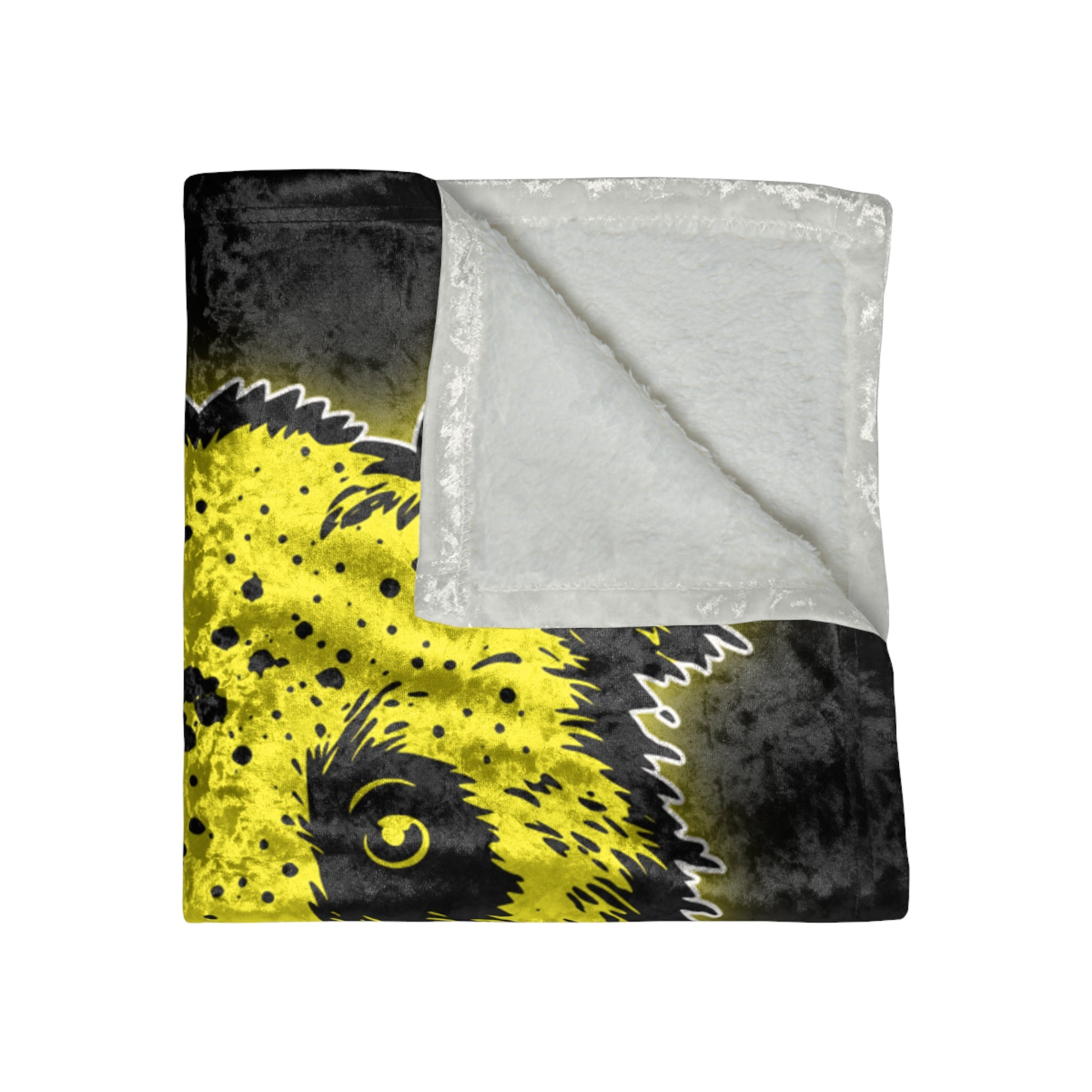 Super soft, super comfy—this crushed velvet blanket with an original custom design will be the perfect addition to the living room couch. It's made from high-quality, durable 100% polyester fabric with zig-zag stitches on its edges.